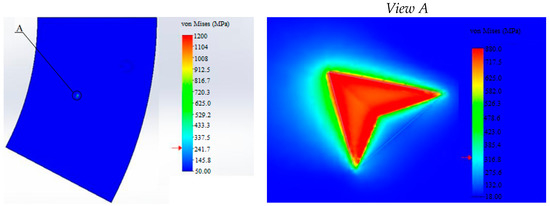 Calculation results of stress for defect No. 3 are shown in Figure 14, Figure 15, Figure 16, Figure 17 and Figure 18.