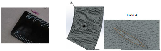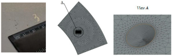 Actual defect and calculation grid for a defect on a disc segment.
