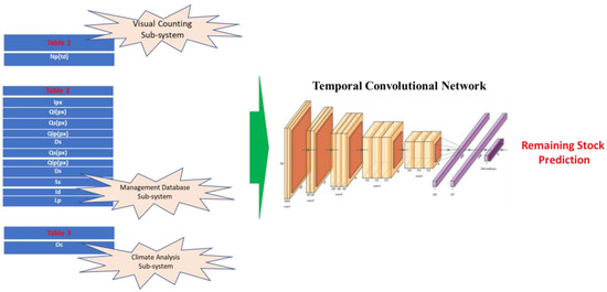 The NLB processing as described in Equations (7) and (10) improves the modeling of the long-term dependencies in the input frames and then the overall performance of the whole deep architecture in predicting the climate’s impact on the remaining stock estimation. The output of this subsystem will be fed as an input to the downstream deep temporal convolutional network.