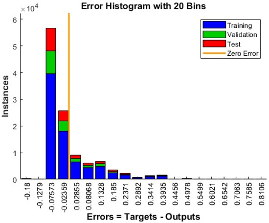 Error histogram behavior for training/validation and test sessions of the proposed solution.