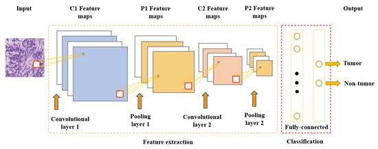 It should be noted that CNNs have proven to be successful classifiers in the field of histology. Nevertheless, they can also be employed in conjunction with other machine learning (ML) classifiers. The authors in [52] developed a CNN model for the automated classification of pathology glioma (brain tumor) images into six subtypes. The images pass through the CNN to obtain patch-level output categories. At this point, those patch labels go through a hierarchical decision tree for patient-level diagnosis based on the amounts and proportions of tumor types. The outcome thus includes results for both the image patch-label and the patient-level label. In [53], researchers developed a three-step approach to HER2 status tissue classification in breast cancer. Firstly, they used a pre-trained UNet-based nucleus detector [54] to create patches. Secondly, they trained a CNN to identify tumor nuclei and further classified them as HER2-positive or HER2-negative. In [55], the authors proposed a classification method for subtype differentiation of liver cancer based on a stacking classifier with deep neural networks as feature extractors. They used four pre-trained deep convolutional neural networks, ResNet50, VGG16, DenseNet201 [56], and InceptionResNetV2 [17], to extract deep features from histopathological images. After fusing extracted deep features from different architectures, they applied multiple ML classifiers (Support-vector machines (SVMs), k-Nearest Neighbor (k-NN), Random Forest (RF)) on the feature vector to obtain final classification.