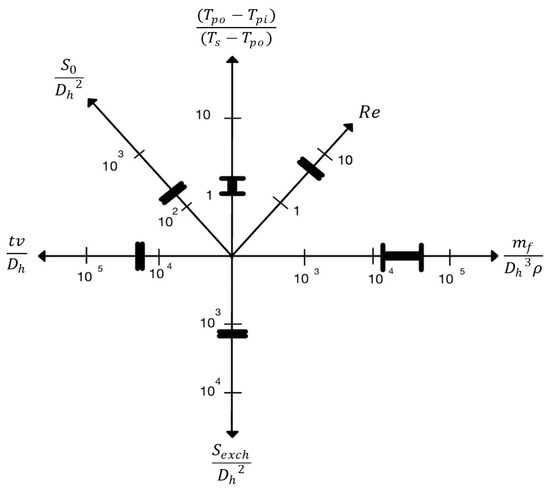 - is the ratio of the total heat exchanging projected surface area to the hydraulic diameter of the flow channel.