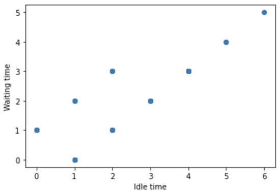 Figure 2 shows idle and waiting times of all different configurations given by the CPTM (6). Note that, the bound is given by the points and . In general, is given by points on a optimal line of the form .