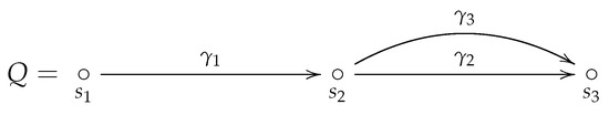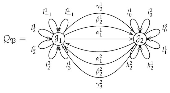 As an example, is an admissible ideal of the algebra defined by the quiver shown in Figure 3. The algebra is generated by the basis . Thus, .