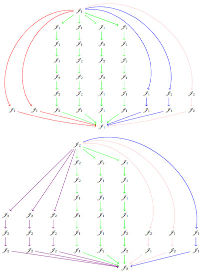 Green and Schroll [29] named Brauer configuration algebras to those bound quiver algebras of type defined by a Brauer configuration (see Remark 1). In such a case the polygons in give the set of vertices of the quiver , whereas its arrows are defined by coverings in completed successor sequences [29,30,31].