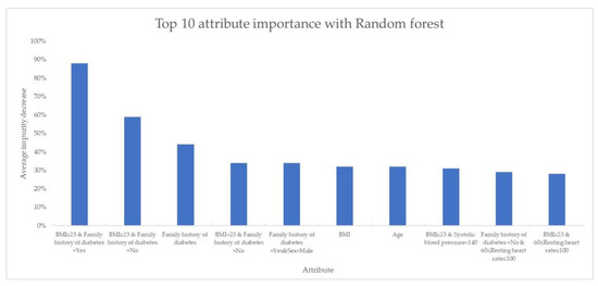 The top 10 attribute importance evaluation with random forest.