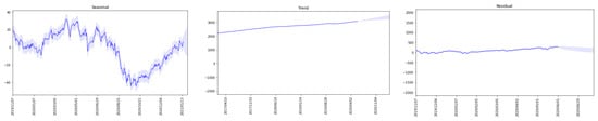 We applied the traditional decomposition into seasonal components and built predictive ARIMA models in the form of intervals using Colab. Figure 1 shows the interval predictive models for the seasonal component, trend, and noise.