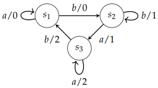 Finite State Machines (FSMs) have found widespread use as models for various types of systems in fields, such as sequential circuits, program development (e.g., lexical analysis and pattern matching), and communication protocols [15,16,17,18]. In this paper, we specifically focus on Mealy machines, which are deterministic machines that generate outputs during state transitions after receiving inputs.