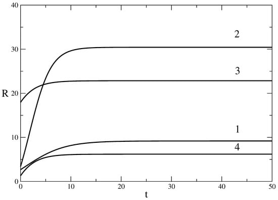 Figure 2 shows several profiles of R connected to the solution (58). These profiles are appropriate for modeling processes that have a level of saturation; for these profiles decreases.