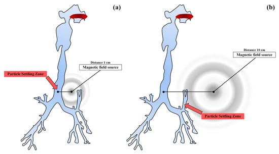 The authors of [64] showed that the local and overall efficiency of particle deposition can be significantly increased by activating the strength of the magnetic field. The data obtained indicate the possible further development of the targeted delivery of drugs through magnetic targeting for the treatment of diseases of the respiratory system.