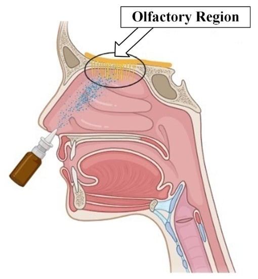 - Wang, Z.; Xiong, G.; Tsang, W.C.; Schätzlein, A.G.; Uchegbu, I.F. Nose-to-Brain Delivery. J. Pharmacol. Exp. Ther. 2019, 370, 593–601. [Google Scholar] [CrossRef]