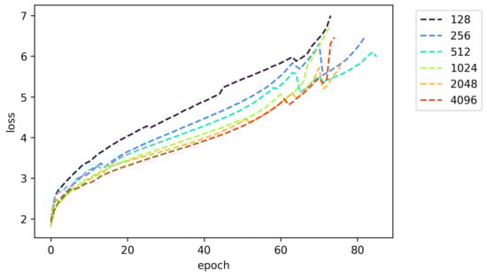 To address this problem, we divided every individual loss vector into periods by identifying moments of significant change. Subsequently, for every model, the obtained vectors were averaged across these periods. Since even within a single model, the length of periods slightly differed, the averaged loss vector has a length in epochs equal to the lengthiest period, and the averaging accounted for the availability of the corresponding loss values for every epoch. All averaged test losses are presented in Figure 7.