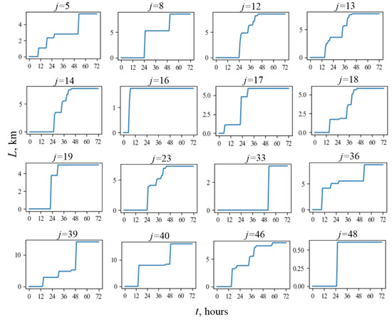 where is the time of the evacuation of the population of the j-th NP from the temporary EP to the permanent EP along the second part of the i-th STER of length . The values of in (8) are also not uniquely defined. The smallest of them satisfies the inequalities , which determines the actual duration of the 2nd stage of evacuation from the j-th HS.