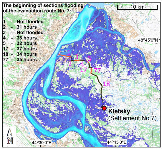 The limited time and transport resources are the main problem in organizing the effective evacuation of the population during floods. However, this problem can be largely compensated for by the availability of a relatively accurate forecast of the development of the emergency for some regions. Such water objects are the floodplains of large lowland rivers regulated by hydroelectric dams. Therefore, floodplains pose a serious danger to the life of the population during spring floods or heavy rainfall [15,24,25,26,27]. The effects of flash floods in urban areas are more severe. The influence of the anthropogenic factor can increase the number of flood victims in urban areas, especially in the road network [28,29]. Therefore, evacuation plans must be well-prepared and include the road network and traffic conditions.