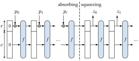 In 2012, after a contest conducted by the NIST, the Keccak hash function was the next SHA-3 standard. However, unlike the SHA-1 and SHA-2 standards, SHA-3 primarily depends on the sponge functions (absorb/squeeze), as presented in Figure 1.