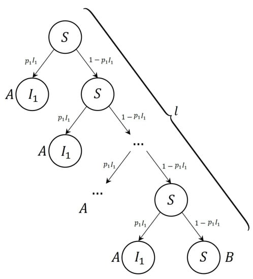From Equations (5) and (6) we see that the probability of transmission to a susceptible individual by l contact with infected individuals can be defined as