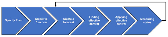 Model predictive control (MPC) is a set of methods for finding effective control based on model prediction. The basic idea of MPC is to estimate the future behavior of the controlled system at a finite time interval and to compute an effective control signal that minimizes a given objective function, given the constraints on the system (see Figure 5).
