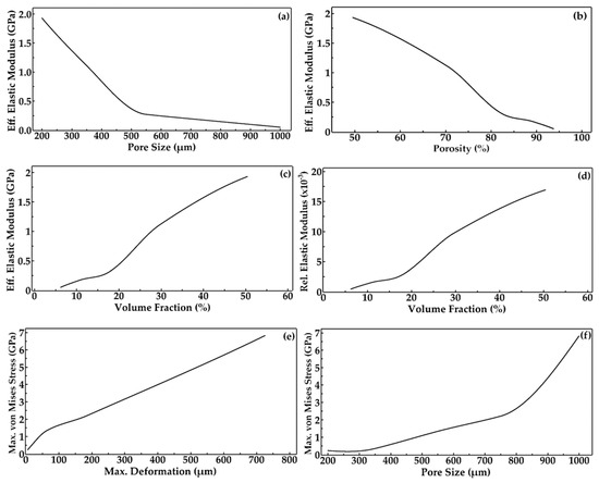 - The maximum von Mises stress and the maximum deformation increase due to decreased volume fraction and increased porosity.