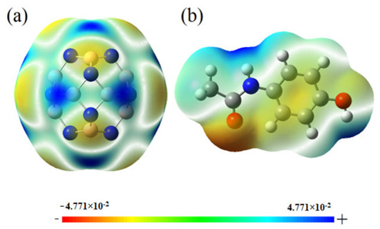 MEP map of B12N12 nanocage (a) and paracetamol (b).