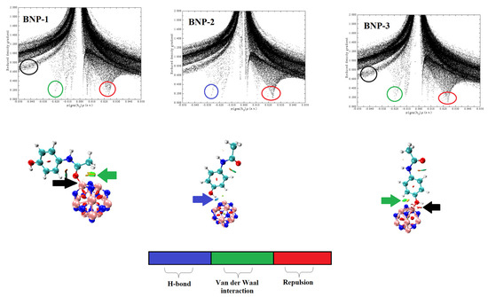 Based on the RDG and NCI analyses, it can be concluded that strong interactions are present in BNP-1 and BNP-3, while BNP-2 exhibits a weak hydrogen bond.