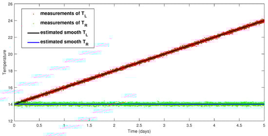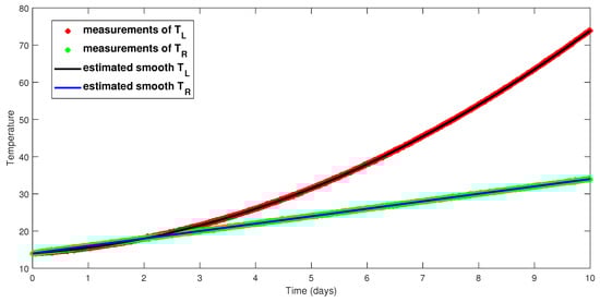 In our problem (1), this can be performed for the boundary temperature or the heat flux. We choose to have Dirichlet boundary conditions in the numerical solver and we estimate the functions and using smoothing splines. The initial condition should be provided to the solver as well. In this case, we can still use the aforementioned polynomial approximation (4) at to specify the initial condition.