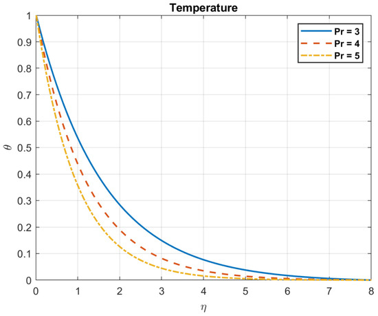 The impact of Prandtl number , on temperature.