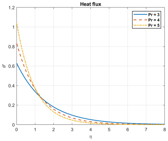 The impact of Prandtl number , on heat flux.