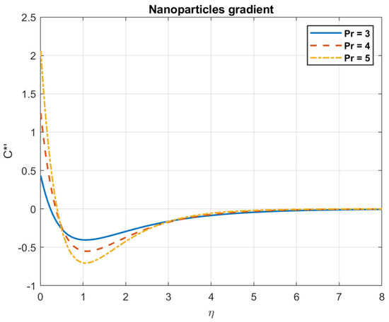 The impact of Prandtl number , on nanoparticles gradient.