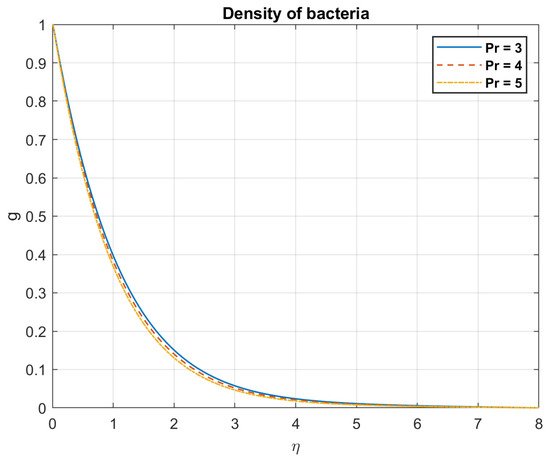The impact of Prandtl number , on density of bacteria.