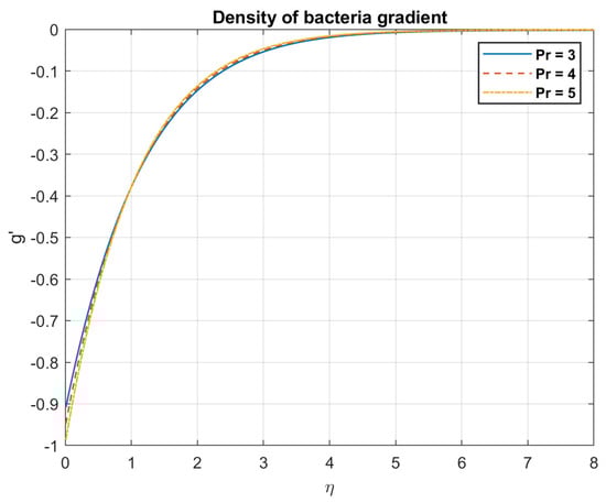 The impact of Prandtl number , on density gradient of bacteria.