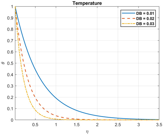 The impact of Brownian motion coefficient, , on temperature.