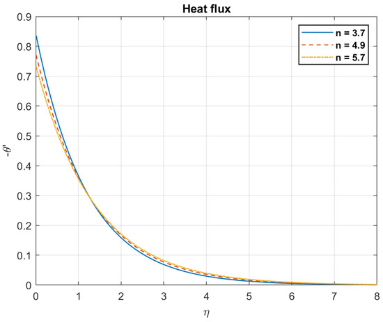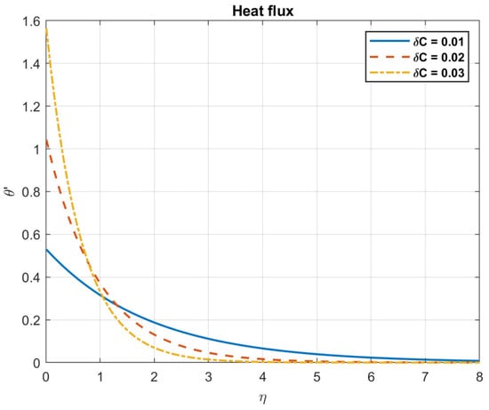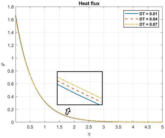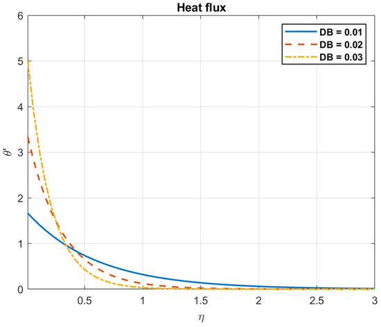 The impact of Brownian motion coefficient, , on heat flux.