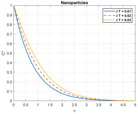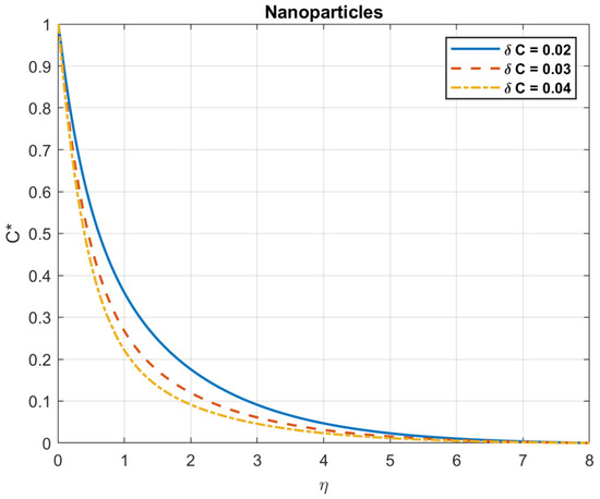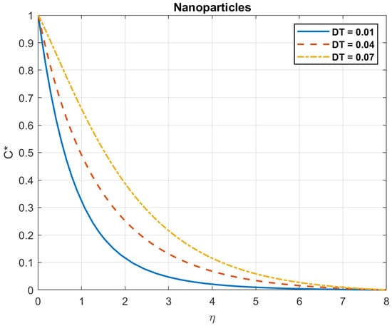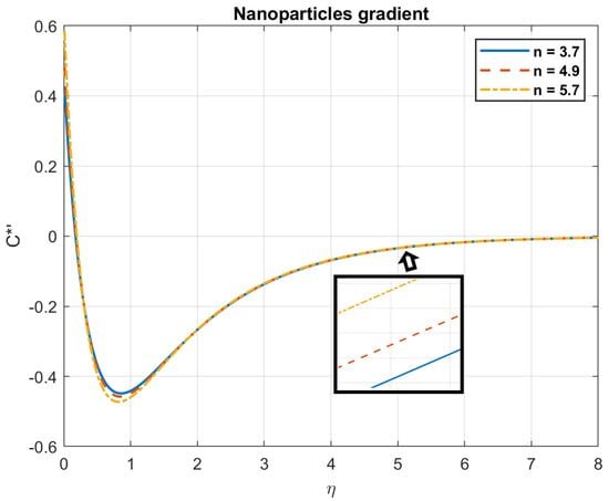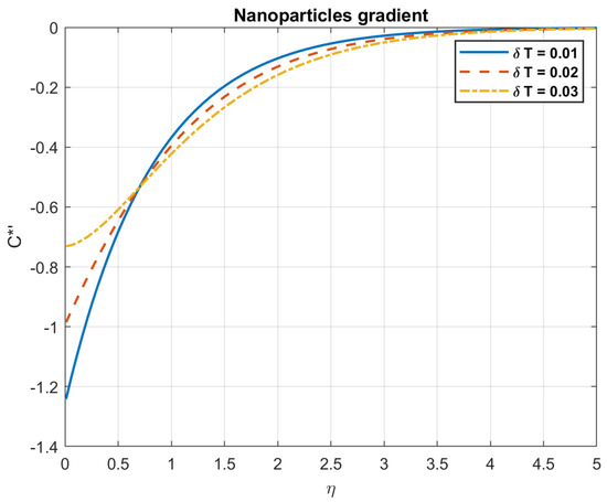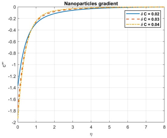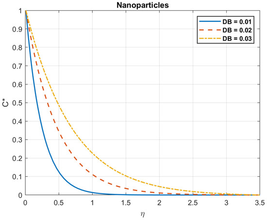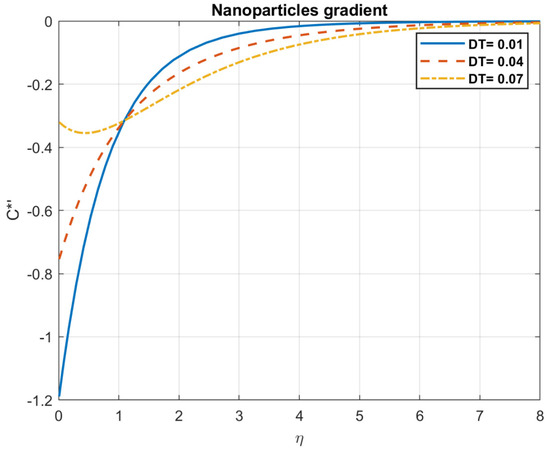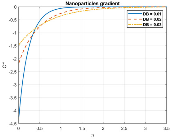 The impact of Brownian motion coefficient, , on nanoparticles gradient.
