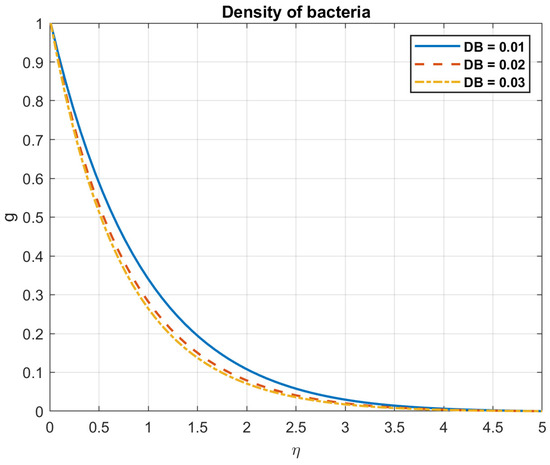 The impact of Brownian motion coefficient, , on density of bacteria.