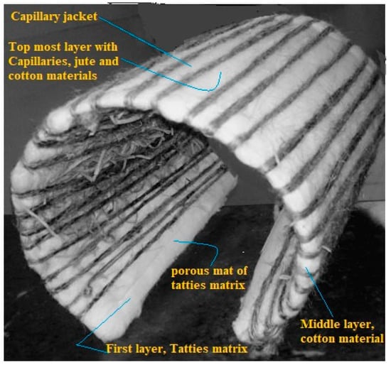 Cooling through the NWCC approach does not need a large external heat exchanger and external energy. In this method, water is absorbed by capillaries, which are usually made of cotton or jute natural ventilation systems and are mounted to reduce the surrounding temperature of the motor, as shown in