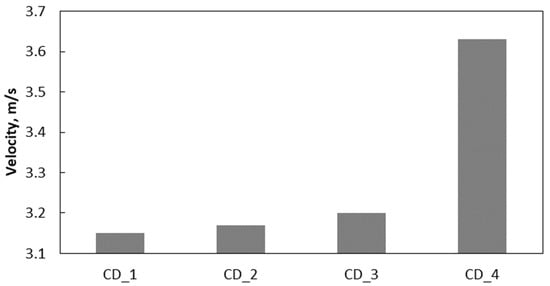 The average velocity in the rotor cross-section for the tested confusor–diffuser (CD) sets (according to Figure 12).