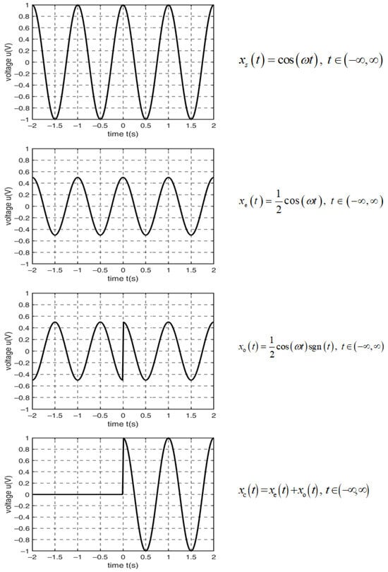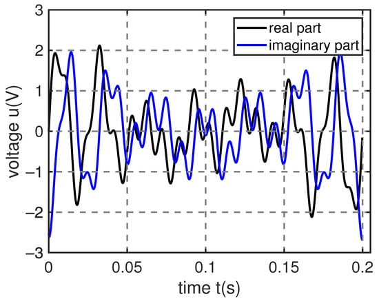 In real continuous systems, all analog signals are real signals, and the technical realization of a complex signal is impossible or is a matter of interpretation. It is possible in digital systems where a sequence of real samples represents the signal. A so-called complex signal is introduced, where each sample is a complex number, defined by its real component and its imaginary component . Therefore, a complex signal is represented by two sequences of real numbers. The first sequence , , and the second sequence , . Thus, for a complex signal in discrete form, the following Equation (24) holds: