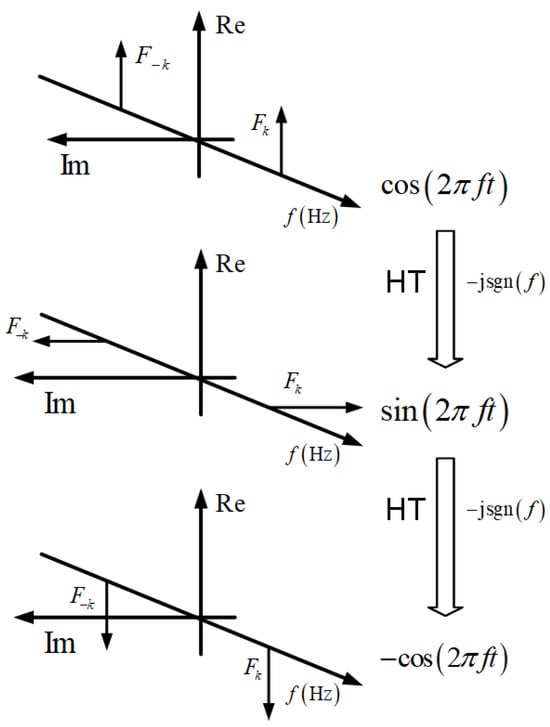 In signal theory, it is proven that, in the case of a causal signal (i.e., for and ), the real and imaginary components of its complex spectrum form a Hilbert transform pair, which means that holds the Equation (13):