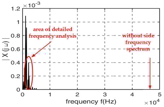 In the frequency domain, the analysis of the calculated spectrum is the fundamental method for signal processing. As is known for the DFT (i.e., discrete Fourier transform) algorithm, it is based on the fact that the sequence of actual signal samples can be expressed, in terms of approximation, as the sum of a unique series of harmonic components, each with its complex amplitude , frequency , and phase shift , ; thus, the following equation holds (1) [1,2,3,4]: