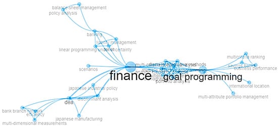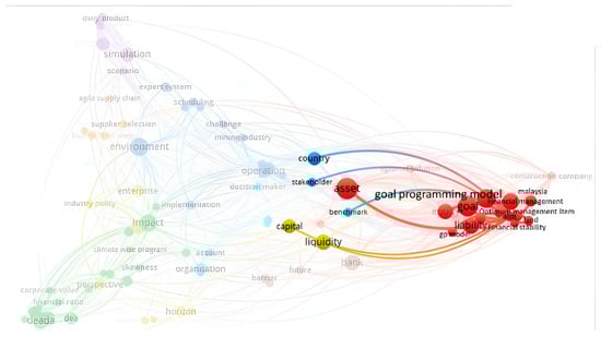 The topic of financial performance with goal programming stands out as the dominant theme, demonstrating significant connections with other clusters throughout the period. Its illustration can be seen in Figure 6, the cluster network.