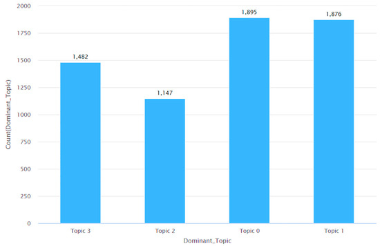 Thereafter, Algorithm 2 was run on the same data to determine the dominant topic for each video description. As a result of running Algorithm 2 on the data, each video description was classified as either Topic 0, Topic 1, Topic 2, or Topic 3. Figure 5 shows the number of video descriptions that were classified to each of these topics.