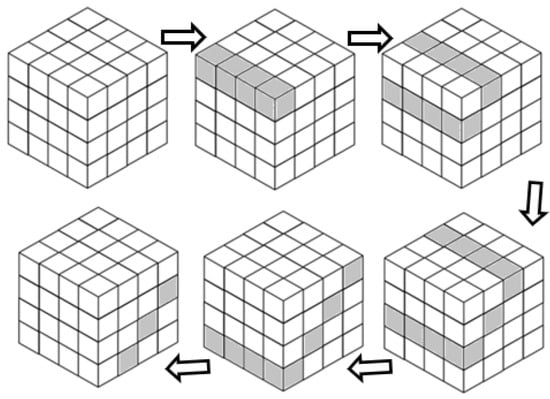 In the second way, we assume that the created array represents three sequences from a cube, and this array is processed as shown in Figure 7. We treat the cube matrix as a 2D array, with nothing different from processing a 2D matrix.