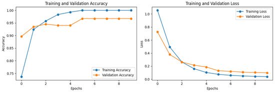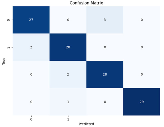 Overfitting was likely avoided in this study due to the consistency between the training and validation accuracies and losses. The model exhibited a training accuracy of 0.992% and a validation accuracy of 0.967%, indicating that it performed well not only on the training data, but also on unseen validation data. Similarly, the training and validation losses were low at 0.038% and 0.097%, respectively, suggesting that the model generalized well to new data without overfitting to the training set. Furthermore, augmentation samples contribute significantly to achieving both high scores and a well-generalized model. By diversifying the training data through augmentation techniques, the model becomes exposed to a broader range of variations and scenarios, thus enhancing its ability to generalize to unseen data. This helps prevent overfitting by ensuring that the model learns robust features and patterns that are applicable across different instances of the data. As a result, augmentation plays a crucial role in improving the performance and robustness of machine learning models.