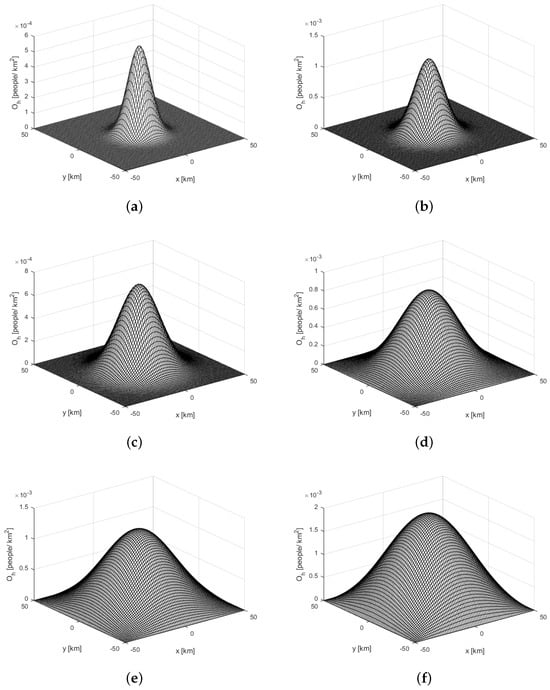 Two-dimensional approximation of to when (a) , (b) (c) (d) (e) (f) .
