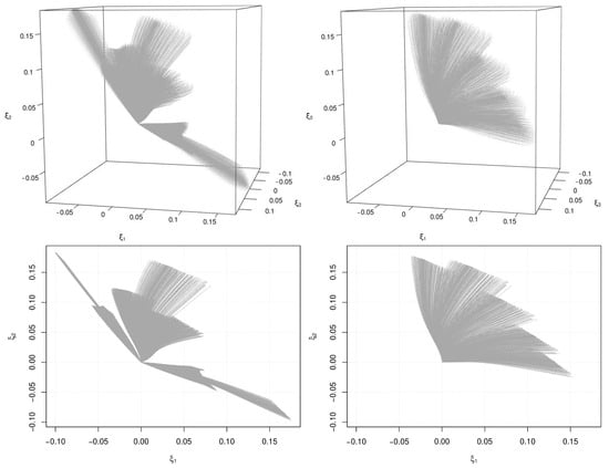 Figure 4 shows the virtual experimental data consisting of points , where we know the values of the response functions . As one can see, our protocol (13) allows us to distribute the experimental data more evenly. Note that we can always add more data by varying . Virtual experiments based on the proposed protocol (13) form the data-driven constitutive equations or InputData for data-driven simulation. In total we obtain 36,472 points in the InputData.