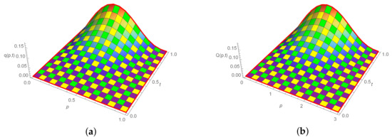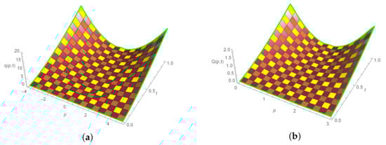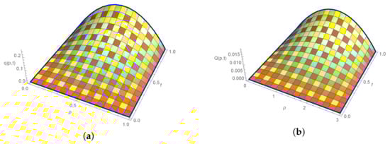3D graphs for Problem 1, when , , and . (a) Exact solution. (b) Numerical solution.