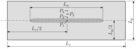 The four probe points, P1 to P4, were positioned transversally to the weld bead to allow for measurement and comparison of the resultant temperature fields simulated by each code run. Instead of parallel to the welding direction, the transverse positioning of the probe points allows for an enhanced numerical convergence analysis by avoiding a similar shape to all the curves. This alternative displacement results in a different temperature magnitude of the curves as well as the different peak times caused by the thermal inertia variance resultant from the smaller (P1) and larger distances (P3 and P4) between the reading points and the heat core. The cartesian coordinates for each probe point are presented in Table 3 and its positions in the specimen are illustrated in Figure 4.