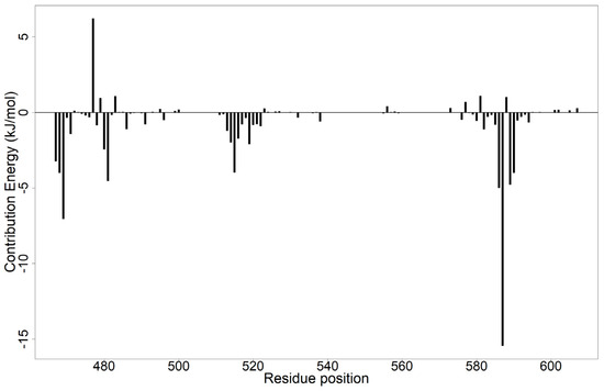 Using g_mmpbsa [93], MMPBSA decomposition was carried out to analyze the energetic contributions of the complexes. The energy terms analyzed include van der Waals (vdW), electrostatic, polar solvation, solvent-accessible surface area (SASA), and enthalpy-based estimates of binding energies. The binding free energy calculations help to understand the energetics associated with the protein–ligand interactions. The per-residue energy contributions of each system were also determined to identify hotspot residues that contribute significantly to ligand binding.