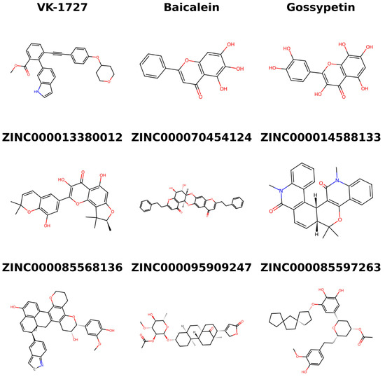 2.6. Further Re-Docking of Top Compounds against All 3 Oncoproteins Using DockThor-VS