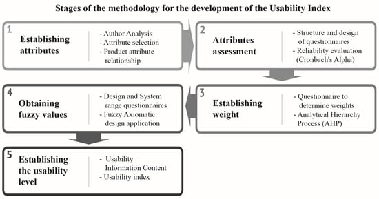The development of the product usability index proposal involved several stages. Figure 1 shows the development and analysis procedure and the results obtained during the product usability index process. This five-stage procedure will be broken down throughout the description of this research.